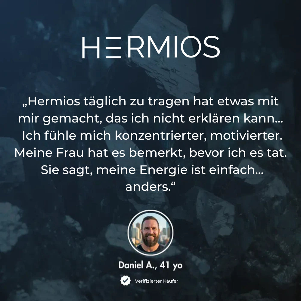 âEntfessle deinen natĂźrlichen Vorteil â Hermios leitet das magnetische Feld reinen Hämatits kontinuierlich weiter, damit du selbst an den längsten Tagen und in den härtesten Momenten volle Energie und männliches Selbstvertrauen bewahrst.â