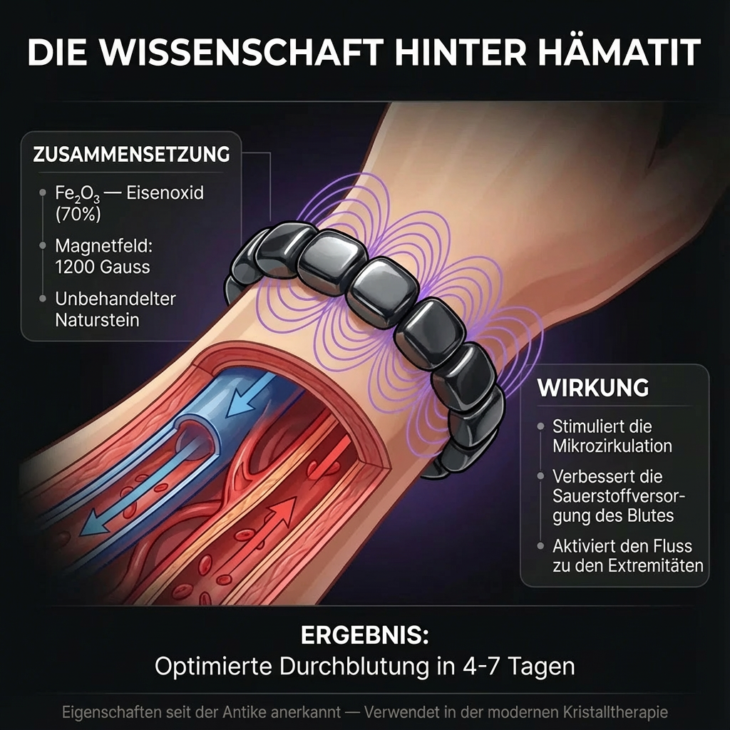 Hämatit wird nicht ohne Grund als „Kriegerstein“ bezeichnet – sein Magnetfeld schützt Ihr Testosteron vor modernen Stressfaktoren und unterstützt den natürlichen Hormonhaushalt. Seine eisenreiche Zusammensetzung fördert zudem eine gesunde Durchblutung und steigert Antrieb, Ausdauer und Konzentration – ganz ohne Chemikalien oder Nebenwirkungen.